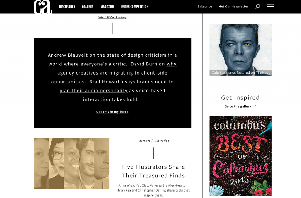Communication Arts is “The Bible” for the creative side of the business. To be featured in the advertising or design annual, or to appear in a feature article in one of the quarterly editions, is a form of acceptance into the club. To have an Adpulp article land on CA’s digital front page this week is not quite the same level of recognition, but it’s handsome recognition and I am grateful.