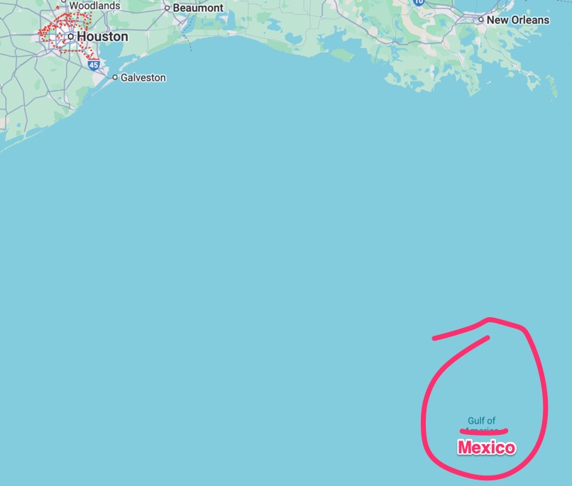 In related news, vindictive little men in The White House blocked an Associated Press reporter from an event in the Oval Office on Tuesday for refusing to change the name of the Gulf. Barring the AP reporter was a violation of the First Amendment of the U.S. Constitution.