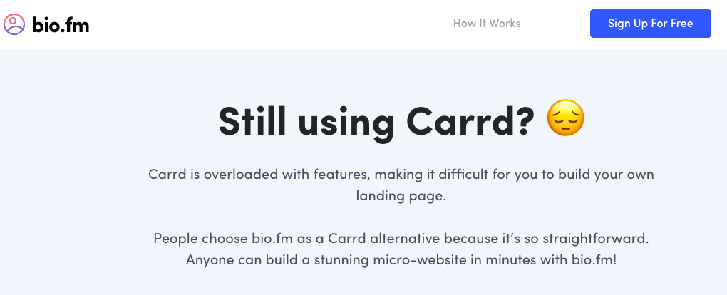 Bio.fm touts itself as a competitor to Carrd.