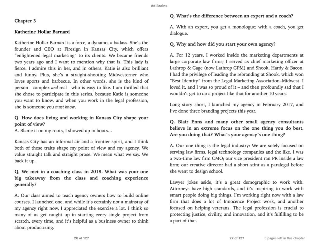 Looking back and reflecting on the collection and the common threads throughout, I think we all share a common desire to help others see the ad business as a place for dedicated professionals who care about one another and creativity’s role in growing businesses.