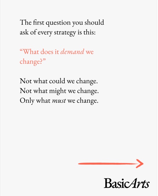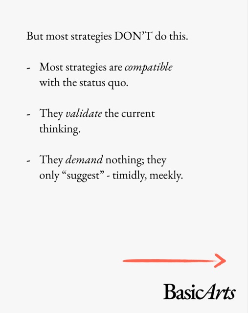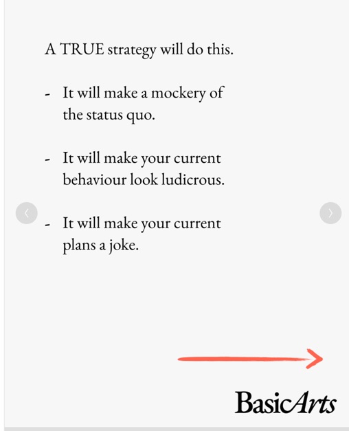 Alex M H Smith, founder of BasicArts in London, is a writer and strategist that I’m paying close attention to these days. Strategy can be an obtuse study, but he makes it all sound logical and straightforward.
