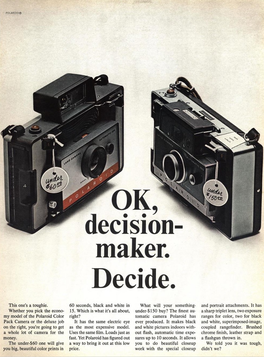 Robinson and her DDB colleagues managed to position Polaroid as a low-cost alternative to traditional cameras. They also made ‘The Polaroid’ into a lifestyle choice, and the combination of pedestrian selling tactics with dreamy and youthful lifestyle imagery worked like a charm.