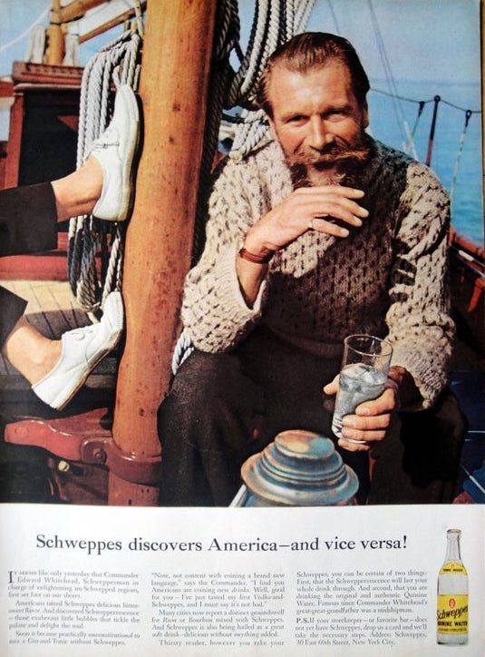 He created another famous brand character for another important client, Schweppe’s. This time it was the bearded mascot, Commander Edward Whitehead, who got people’s attention. Men with beards were not common at the time. Like the man with the eye patch in a crisp Hathaway shirt, Ogilvy successfully used another visual device to entice readers to stop and consider.