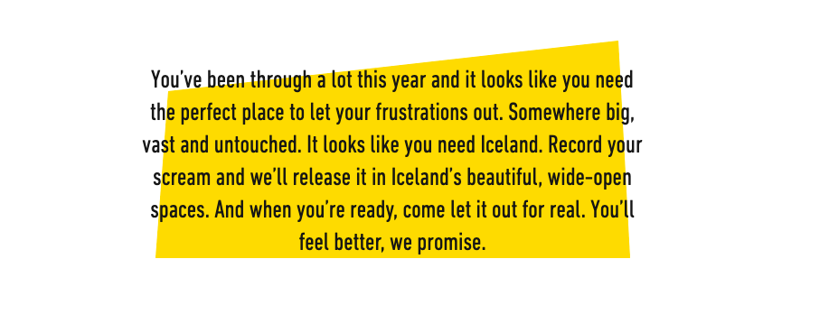 Bop on over to ItLooksLikeYouNeedIceland.com, push a button, or two and let it out. If you need inspiration first, this will get you primed to yell out loud:
