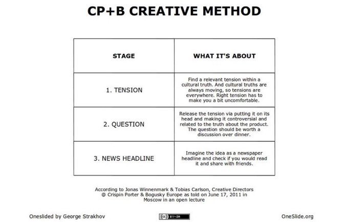 Are you familiar with the agency’s Creative Method? It’s a framework well worth studying and replicating with your own twist or modifications.