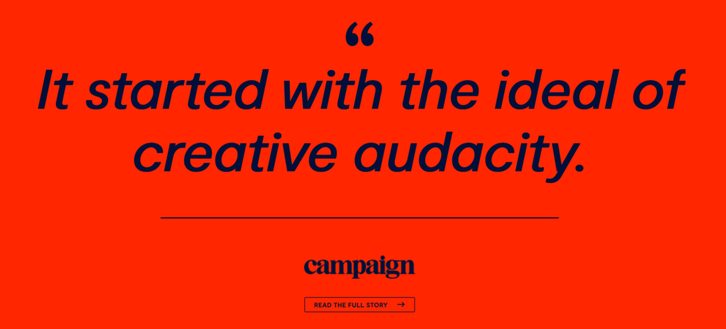 During the podcast, Cartwright explains his agency’s point of view on creative audacity. It’s a spoken version of what it says on the agency’s website: