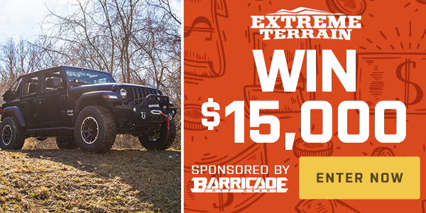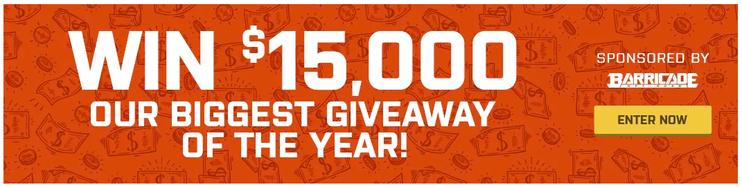 The $15K Giveaway, sponsored by Barricade Off-Road, runs until 5/14/20, You can enter these sweepstakes every day to increase your odds of winning. No purchase necessary.