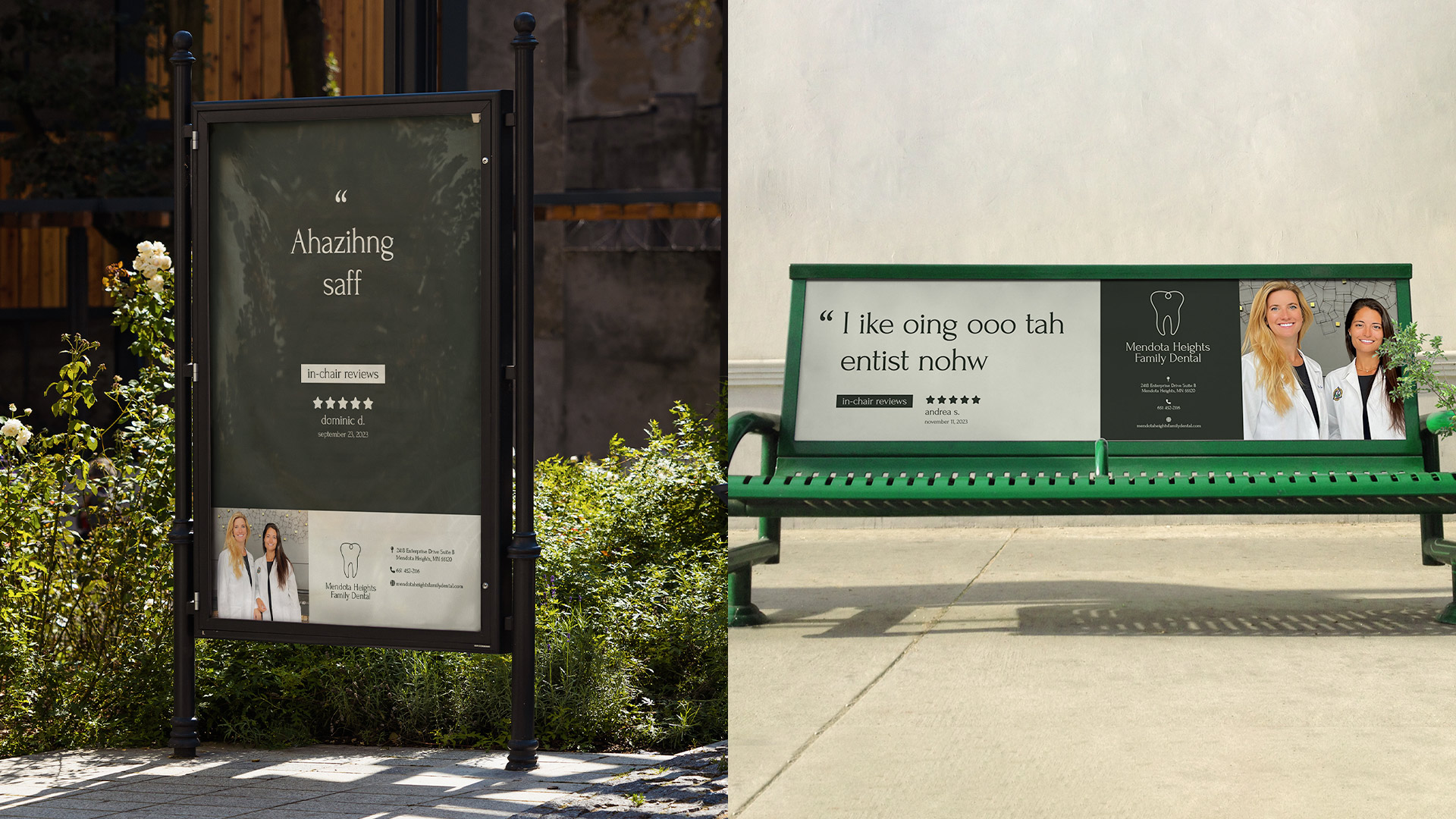 People love Mendota Heights Family Dental so much they just can’t wait to tell everyone. So much so that the instruments are still in their mouths. The result were print ads, posters and OOH that took some time to translate and understand as it does for Dr. Asha and Dr. Dana.